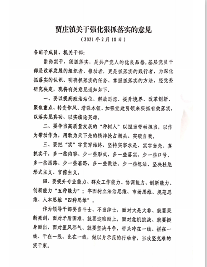 2月18日是農(nóng)歷正月初七,也是春節(jié)假期過(guò)后的第一個(gè)工作日,賈莊鎮(zhèn)迅速召開(kāi)2021年工作部署動(dòng)員會(huì)議,第一時(shí)間貫徹落實(shí)省市縣會(huì)議精神,安排部署2021年工作任務(wù),確定2021年為“效率提升、工作落實(shí)”年,動(dòng)員全鎮(zhèn)上下,崇尚實(shí)干、狠抓落實(shí),加快對(duì)接融合,凝聚發(fā)展合力,加快建設(shè)縣城副中心,開(kāi)創(chuàng)全鎮(zhèn)高質(zhì)量發(fā)展新局面。班子成員,管區(qū)書(shū)記參加會(huì)議。
